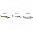 4. Made of ABS plastic material, it is sturdy and strong, resistant to hitting and knocking. The inner steel ball has been tested by precision instruments to ensure the swimming posture of each bait.