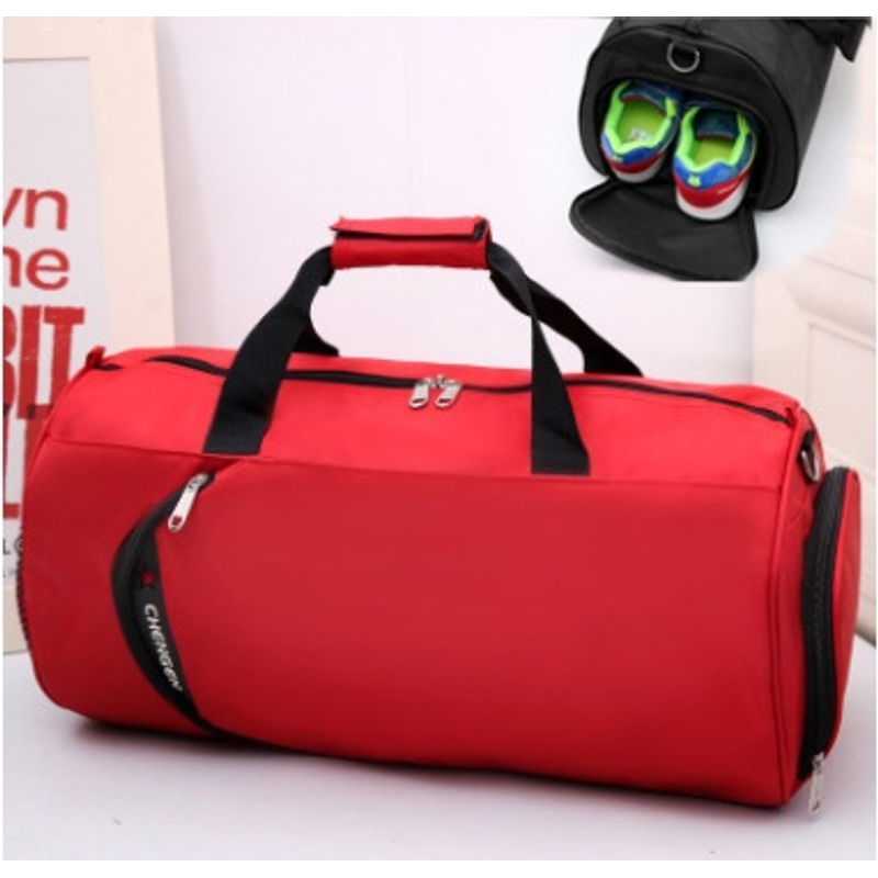 Fitness bag men's sports bag basketball training bag football bag portable travel bag cylinder bag shoulder bag waterproof Red Large