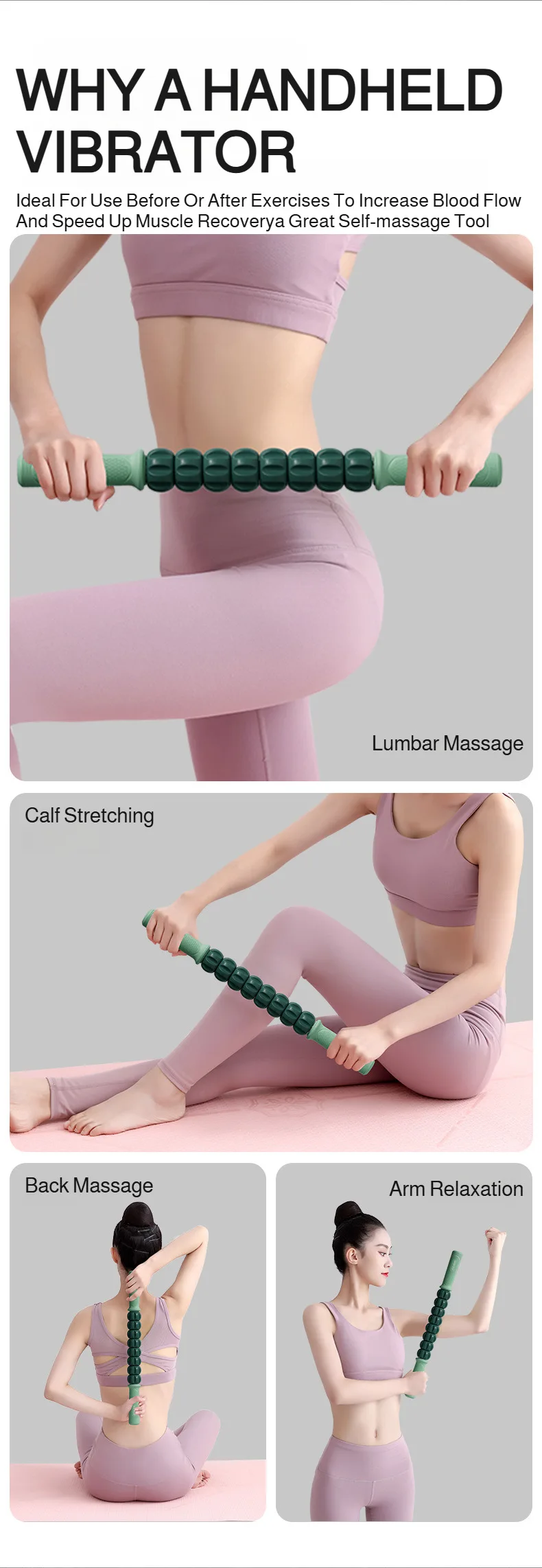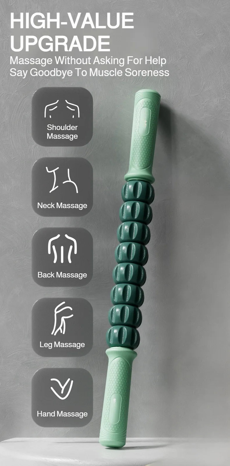 Fitness Exercise Massage Stick Roller Leg Massager Relaxation Recovery Yoga Fascia Roller for Outdoor and Home Workouts