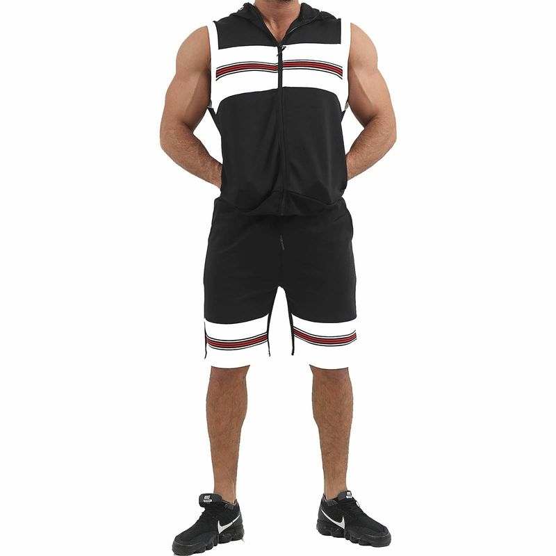 Fitness hooded sleeveless vest shorts White M