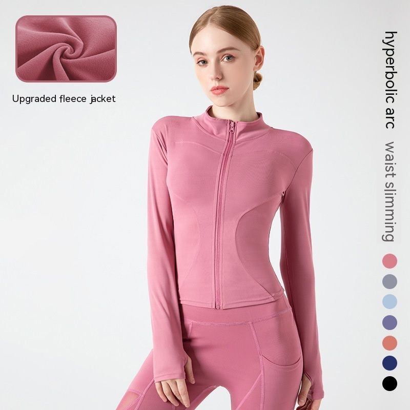 Fitness Running Yoga Sports Coat Barbie powder with added velve S