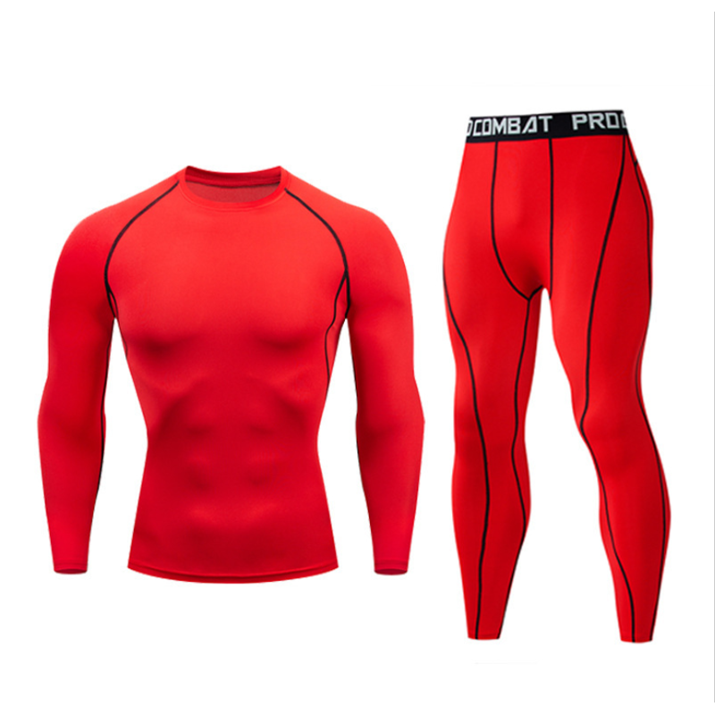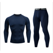 Fitness suit men's gym sports tights long-sleeved trousers quick-drying clothes basketball training equipment winter Tibetan Blue L