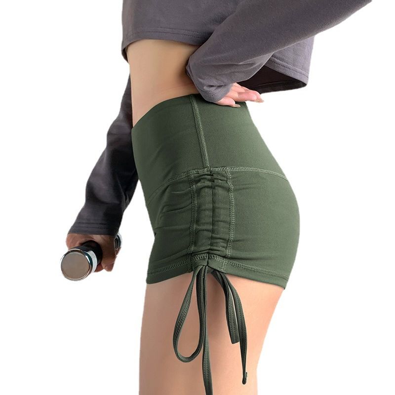 Fitness Yoga Shorts Women's Outer Wear Fitness Exercise Large Drawstring High Elastic Peach Hip Grey 2XL