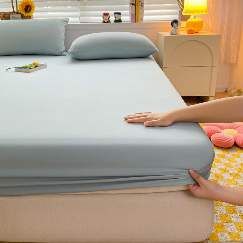 Fitted Bed Sheet with Elastic Band Solid Color Soft Cotton Mattress Cover for Single Double King Queen Bed 140/150/160/180/200