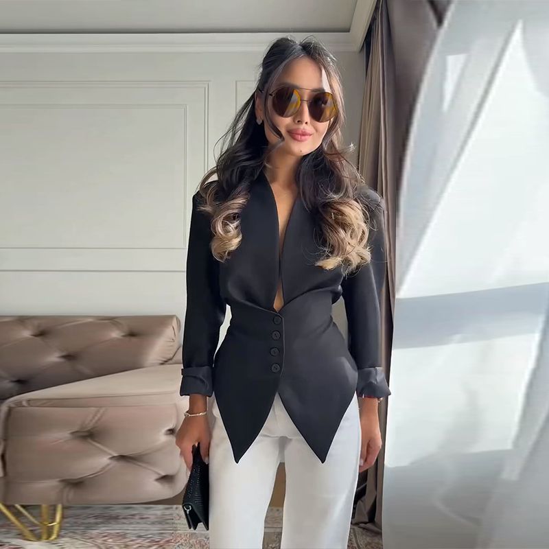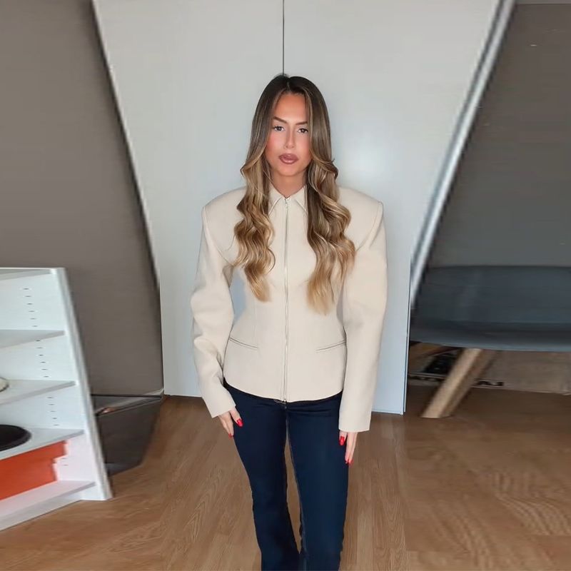 Fitted Cinched Waist Zip Up Jacket Solid Slim Fit Structured Lapel Collar 2026 Spring Causal Women Outerwear Chic Edgy Lady Coat