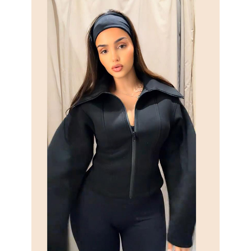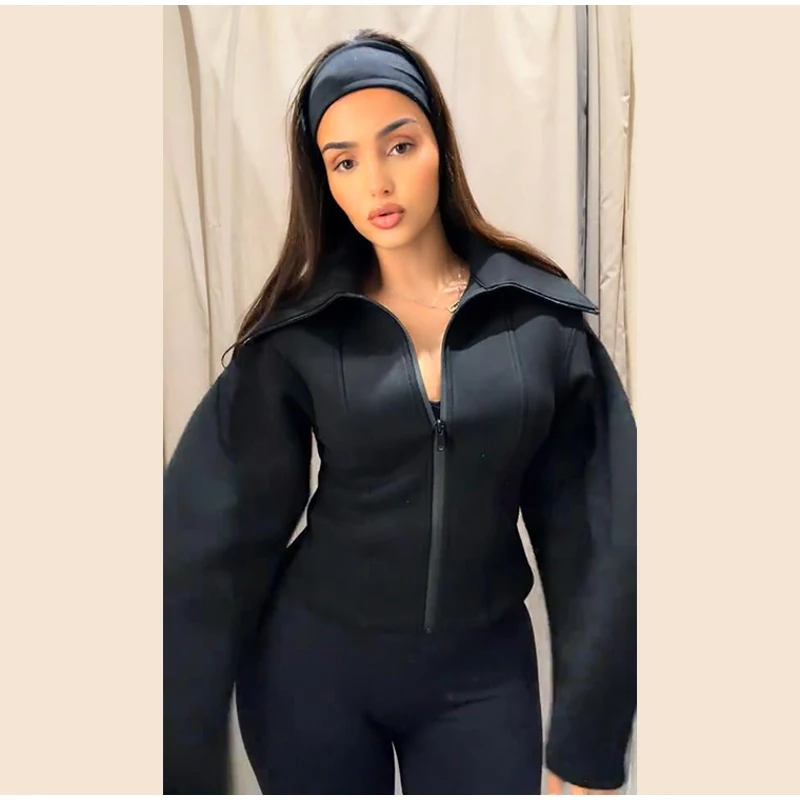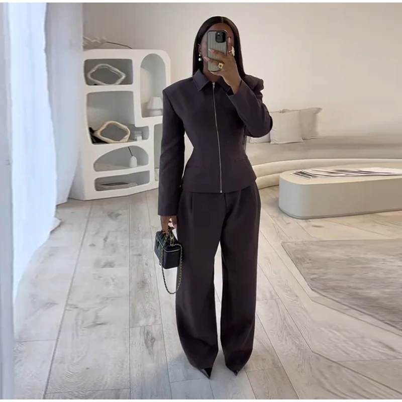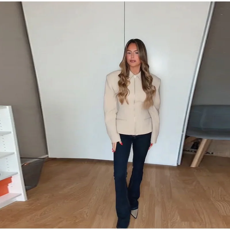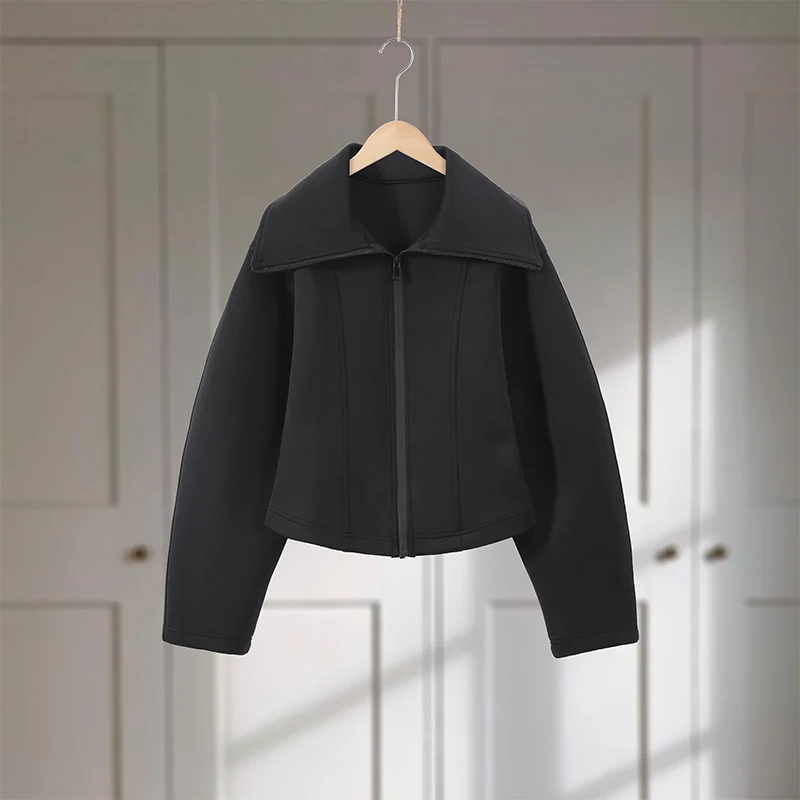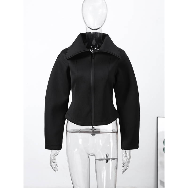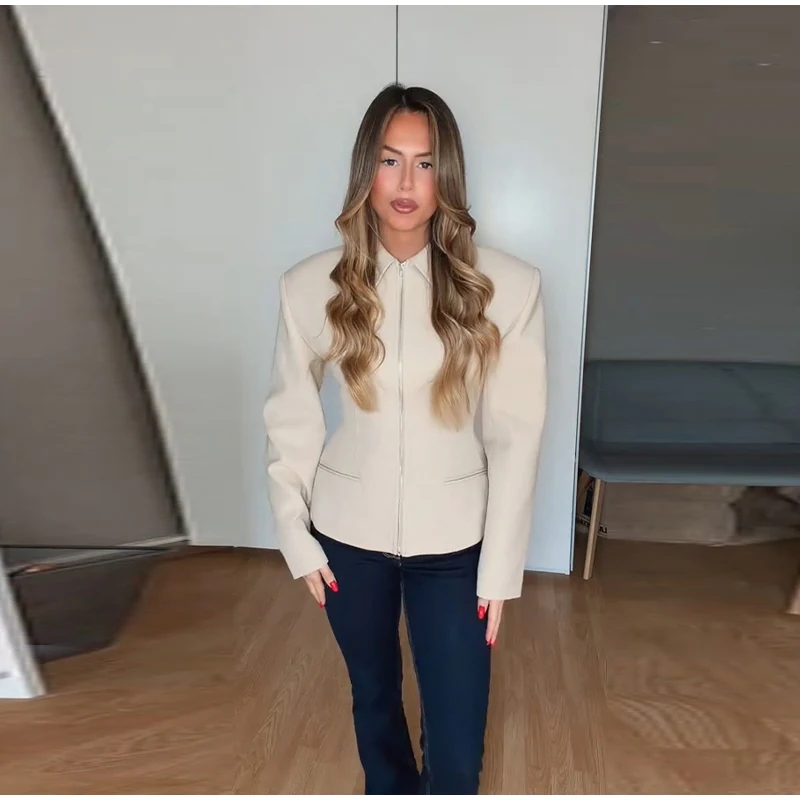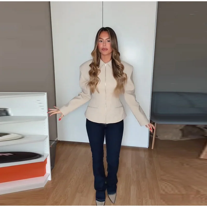 Fitted Cinched Waist Zip Up Jacket Solid Slim Fit Structured Lapel Collar 2026 Spring Causal Women Outerwear Chic Edgy Lady Coat