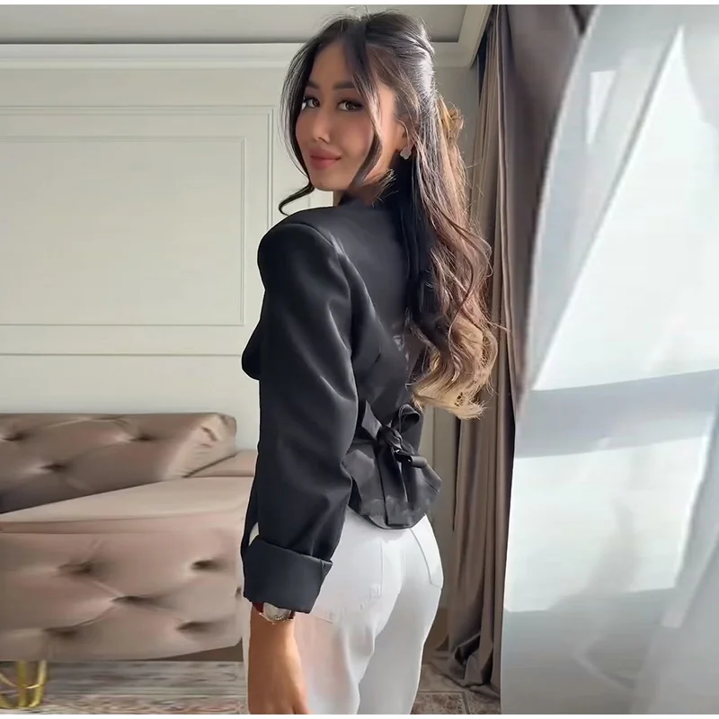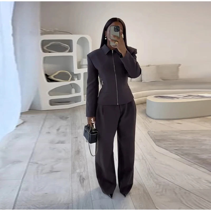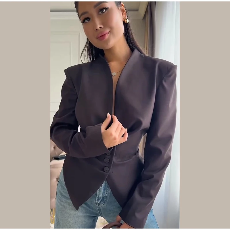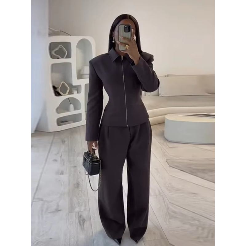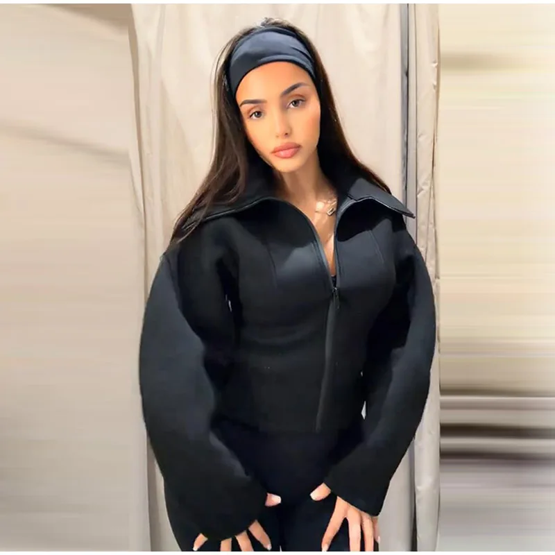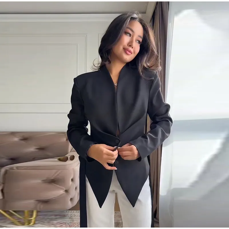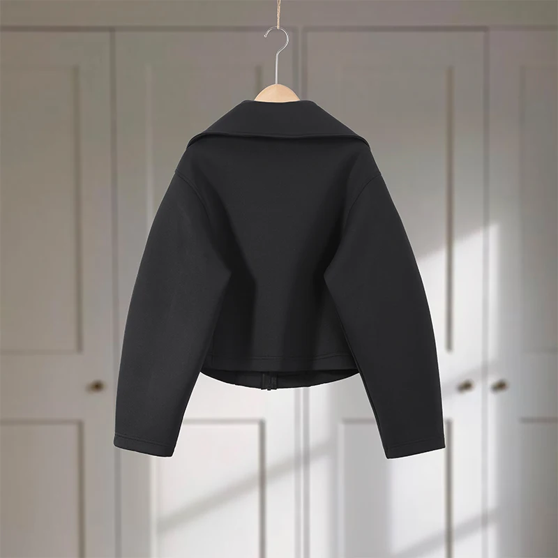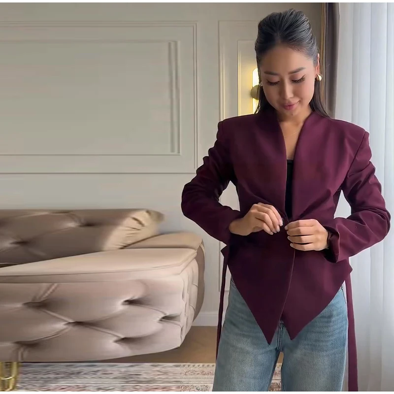Fitted Cinched Waist Zip Up Jacket Solid Slim Fit Structured Lapel Collar 2026 Spring Causal Women Outerwear Chic Edgy Lady Coat