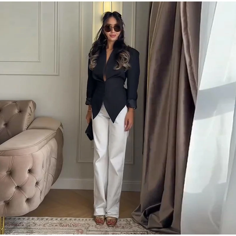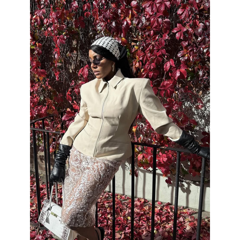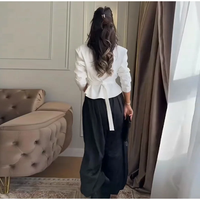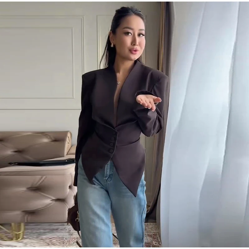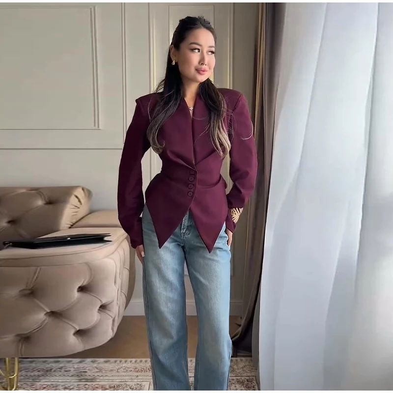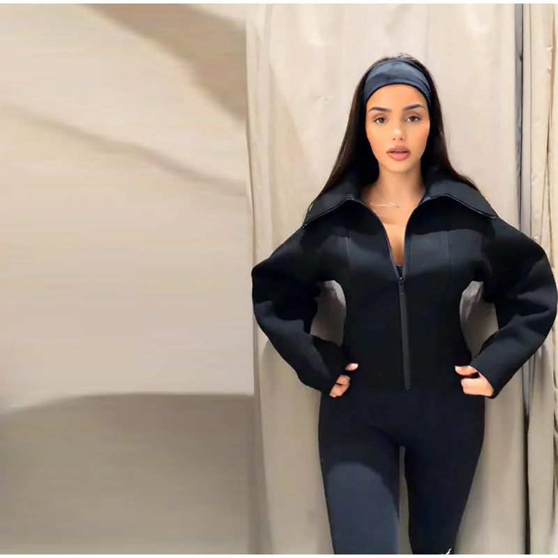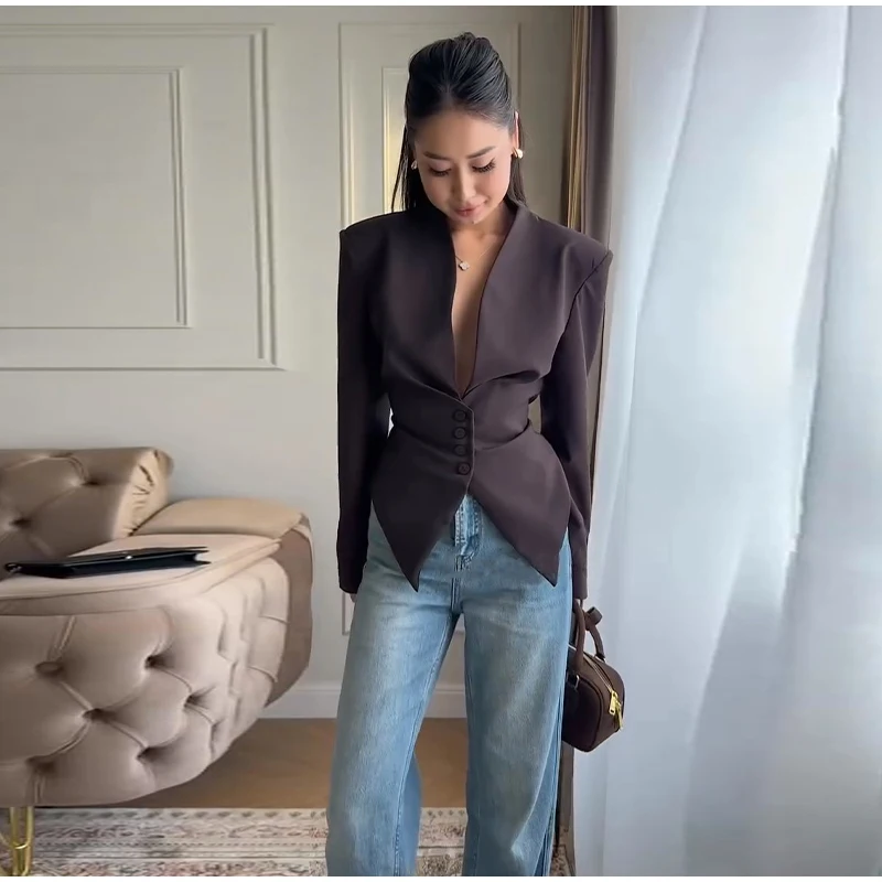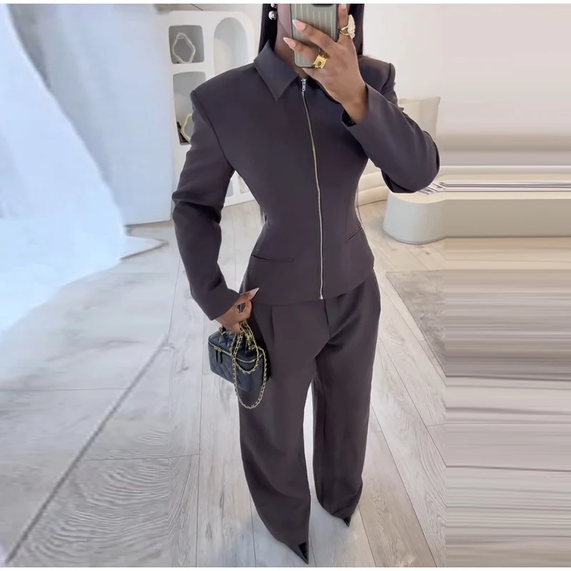 Fitted Cinched Waist Zip Up Jacket Solid Slim Fit Structured Lapel Collar 2026 Spring Causal Women Outerwear Chic Edgy Lady Coat