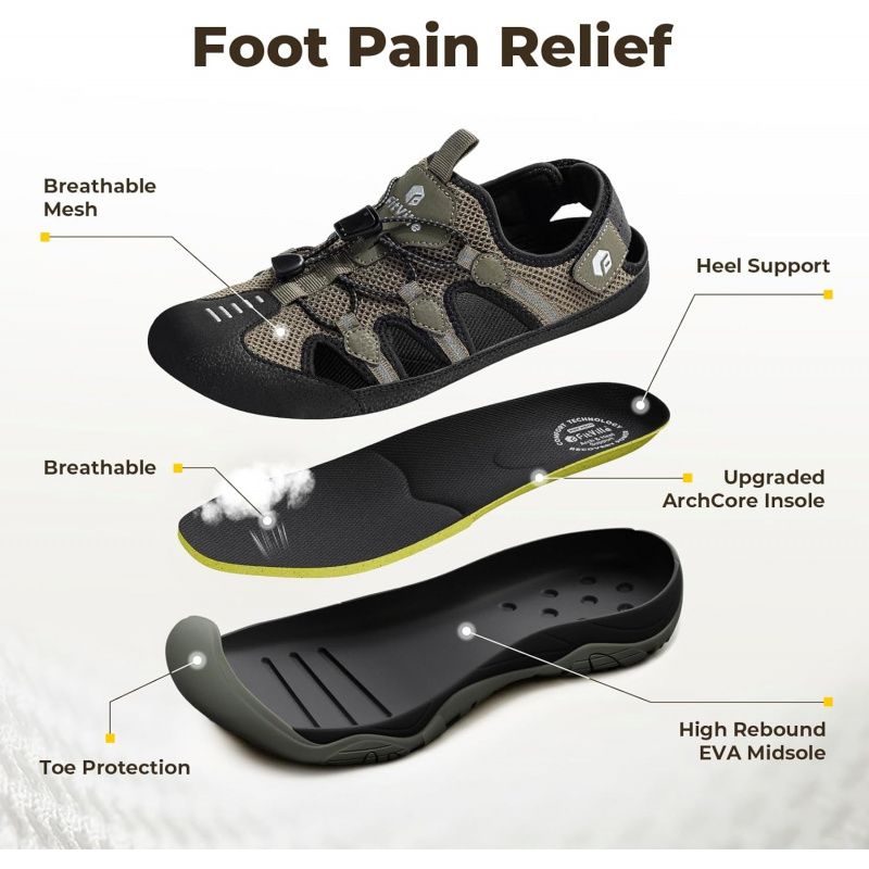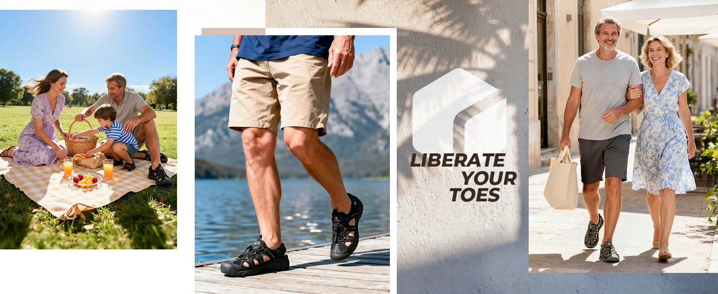 All-day Support & Cushioning: Equipped with a high-rebound EVA midsole that offers excellent shock absorption and energy return. Perfect for long walks or standing, these Summer sandals reduce stress on feet, knees, and back