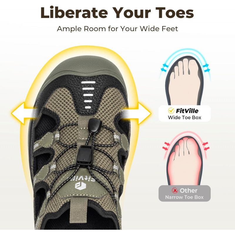 Wide Toe Box for Comfort: Designed with an extra-wide toe box to prevent crowding, relieve pressure on bunions, hammertoes, and swollen feet. The roomy fit and high instep design ensure all-day comfort without pressure points