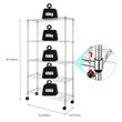 The 5-Layer Chrome Plated Iron Shelf with 1.5" Nylon Wheels is perfect for organizing or displaying accessories, makeup products, tools and more. With a multi-layer construction, it accommodates items in different sizes and shapes brilliantly. Open design allows you to quickly fetch the one you want. Made with high-grade iron with chrome plating, it is tough, reliable and durable. Simple modern design coordinates well with any home and shop decor styles. Smooth wheels add to the ease of mobility. Click and order now!