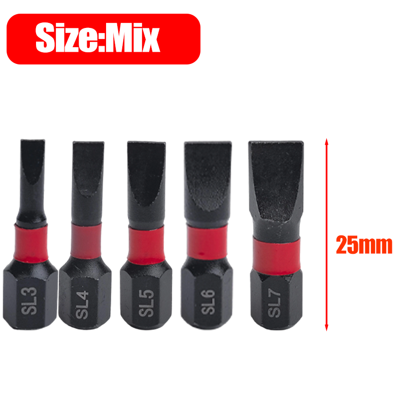 Flat Slotted Head Electric Screwdriver Bit SL3-SL7 Magnetic Screwdriver Bits S2 Steel Impact Drill Bits Set Drilling Driver Tool