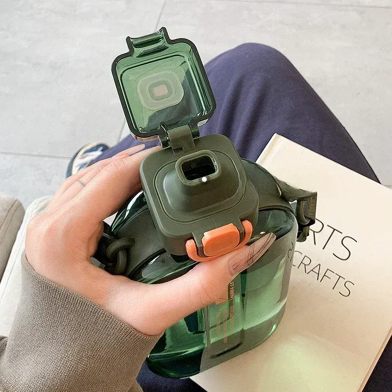 Flat Square Transparent Water Bottle Portable Travel Canteen with Adjustable Strap Elegant Slim Bottle for Sport Camping