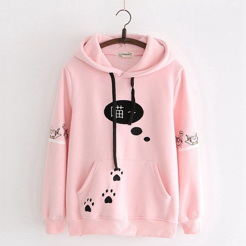 Fleece warm hooded sweater Pink One size