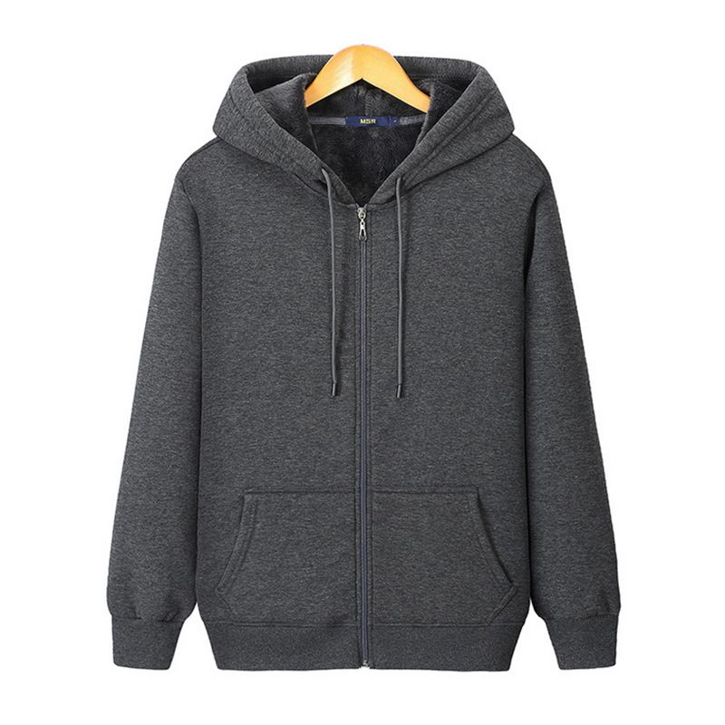 Fleece Warm Men's Zipper Hooded Sweater Dark Grey 2XL