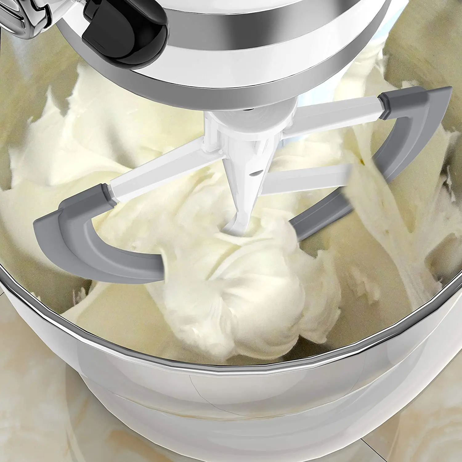 Flexible edge mixer saves time: This curved edge mixer's 6-quart paddle can continuously strike, scrape, and mix ingredients on the sides and bottom, ensuring thorough mixing without scratching the mixing bowl.