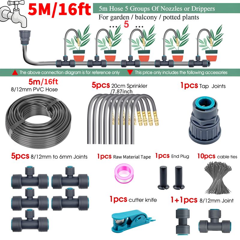 Flexible Brass Adjustable Spray Kit Gray 3/8"PE Hose Quick Connect Fogging Cooling Dedusting Watering System for Garden