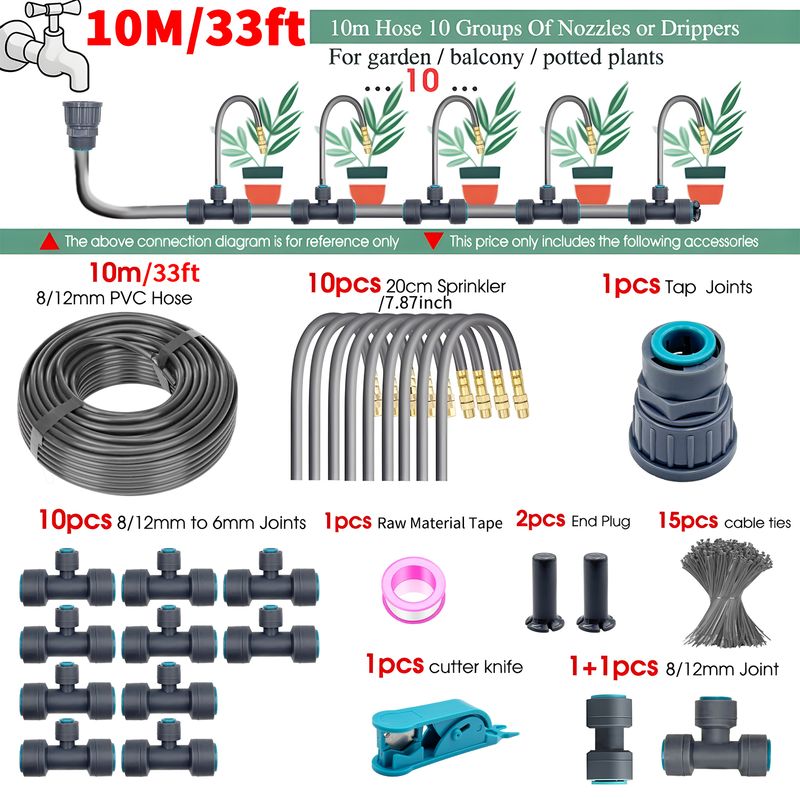 Flexible Brass Adjustable Spray Kit Gray 3/8"PE Hose Quick Connect Fogging Cooling Dedusting Watering System for Garden