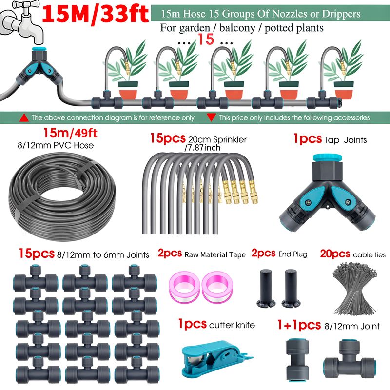 Flexible Brass Adjustable Spray Kit Gray 3/8"PE Hose Quick Connect Fogging Cooling Dedusting Watering System for Garden