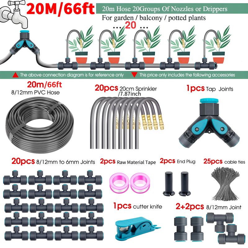 Flexible Brass Adjustable Spray Kit Gray 3/8"PE Hose Quick Connect Fogging Cooling Dedusting Watering System for Garden