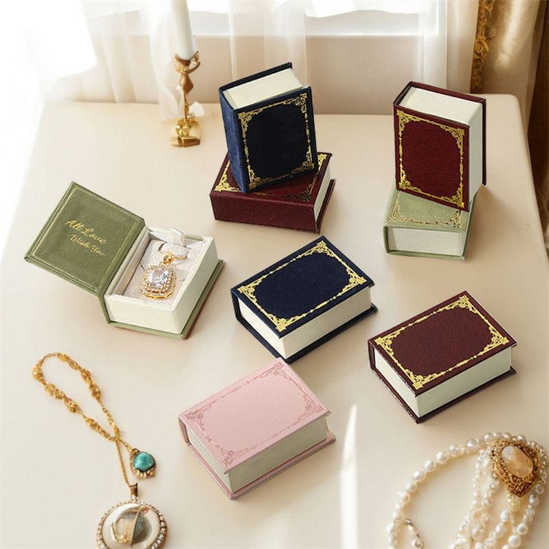 Flip Cover Book Shaped Jewelry Display Box Simple Earrings Ring Necklace Pendant Storage Box Portable Travel Jewelry Holder