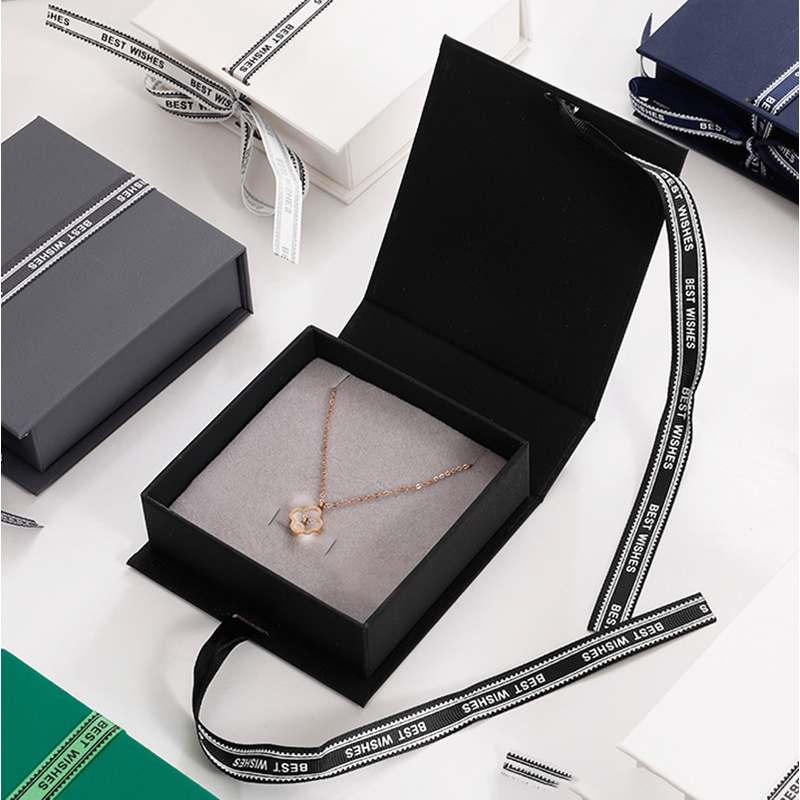 1. Flip box jewelry paper box, ribbon book shaped necklace box, earrings, bracelets, rings, jewelry packaging gift box