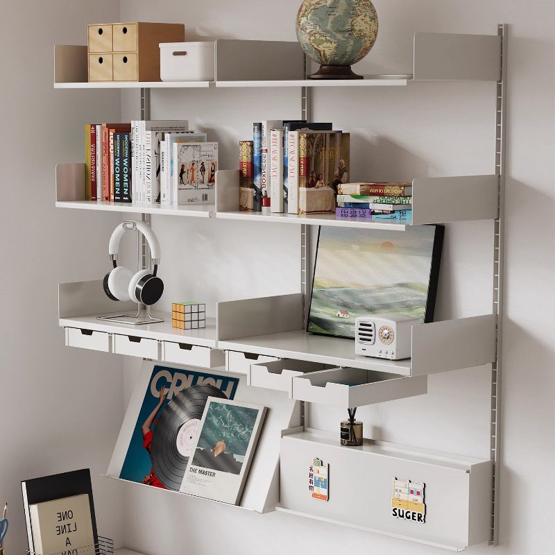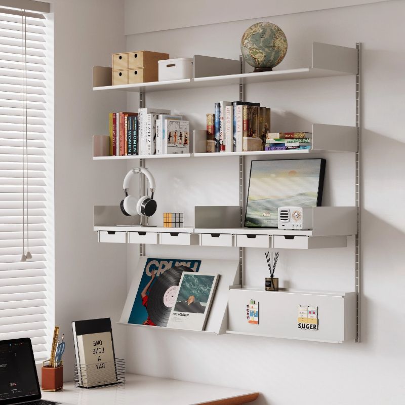 Floating Rail Wall Shelf Modular Interchangeable Storage System MultiFunction Bookcase Display Iron Storage Rack for Small Space