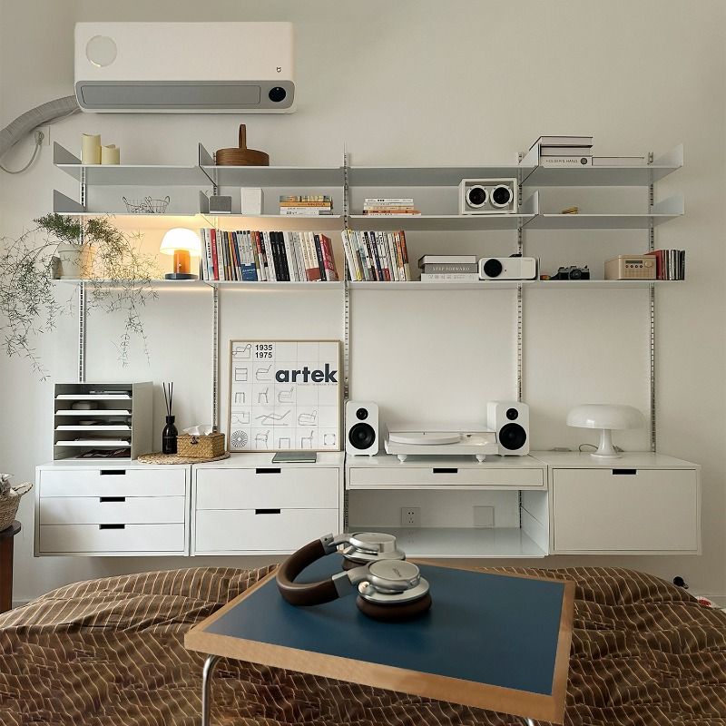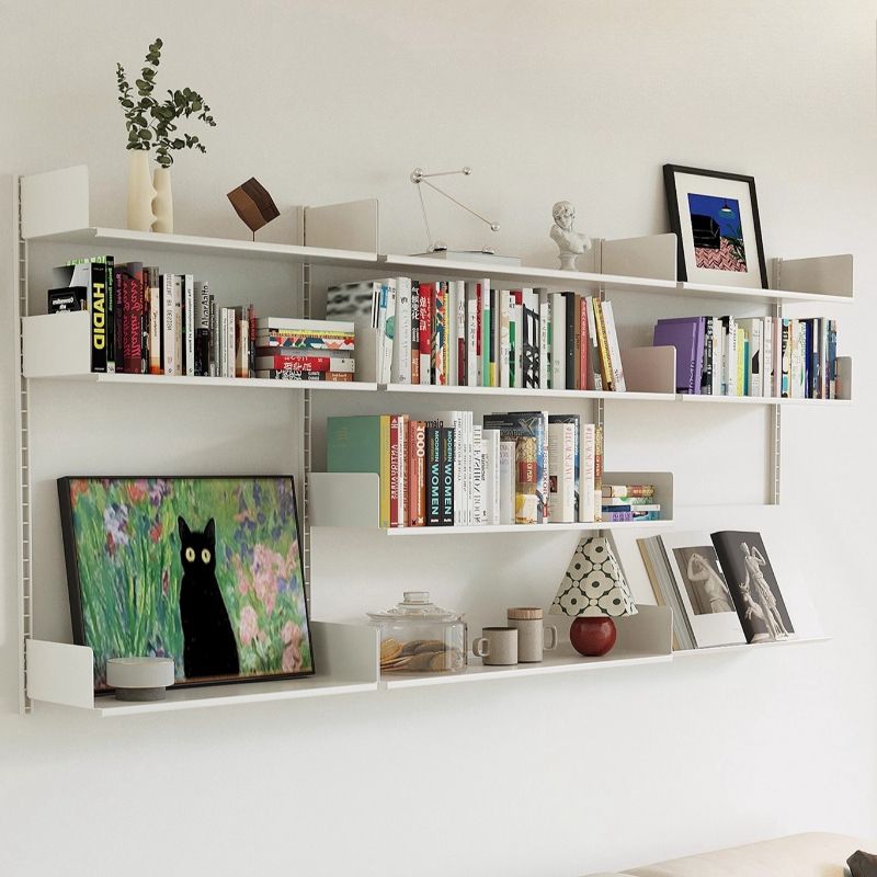 Floating Rail Wall Shelf Modular Interchangeable Storage System MultiFunction Bookcase Display Iron Storage Rack for Small Space