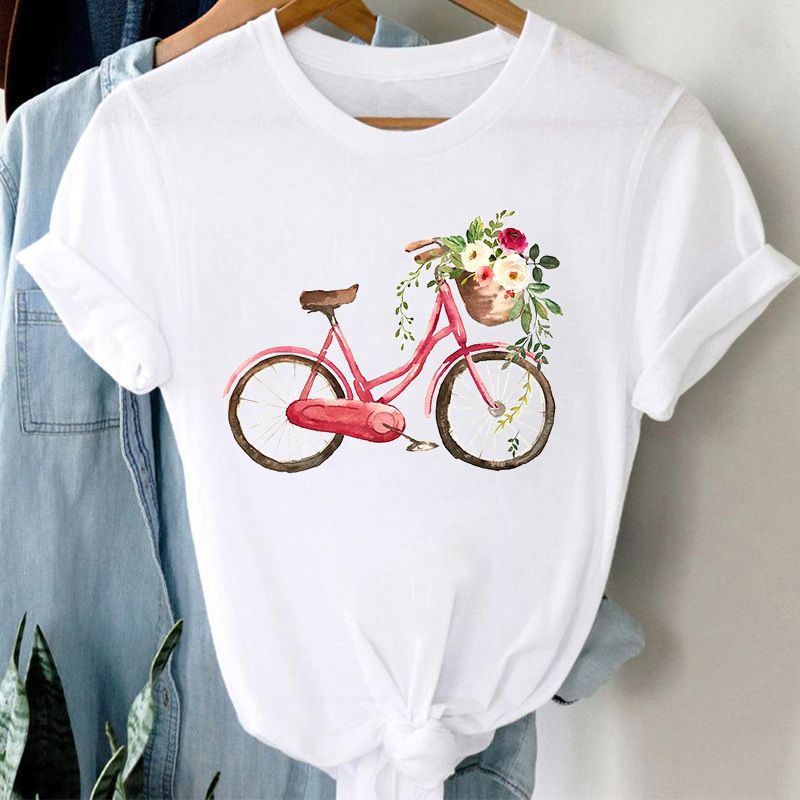 Floral Bicycle Short Sleeve Women's Shirt A7304 XXXL