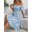 Floral Print Square Collar Dress Summer Fashion Ruffles Dresses Women's Clothing Blue S