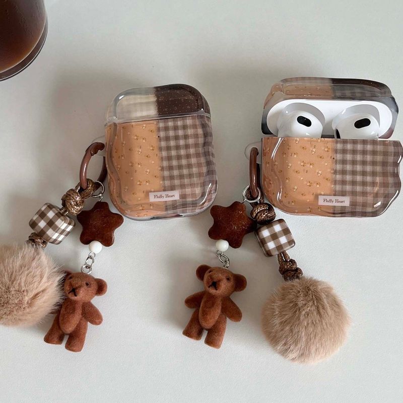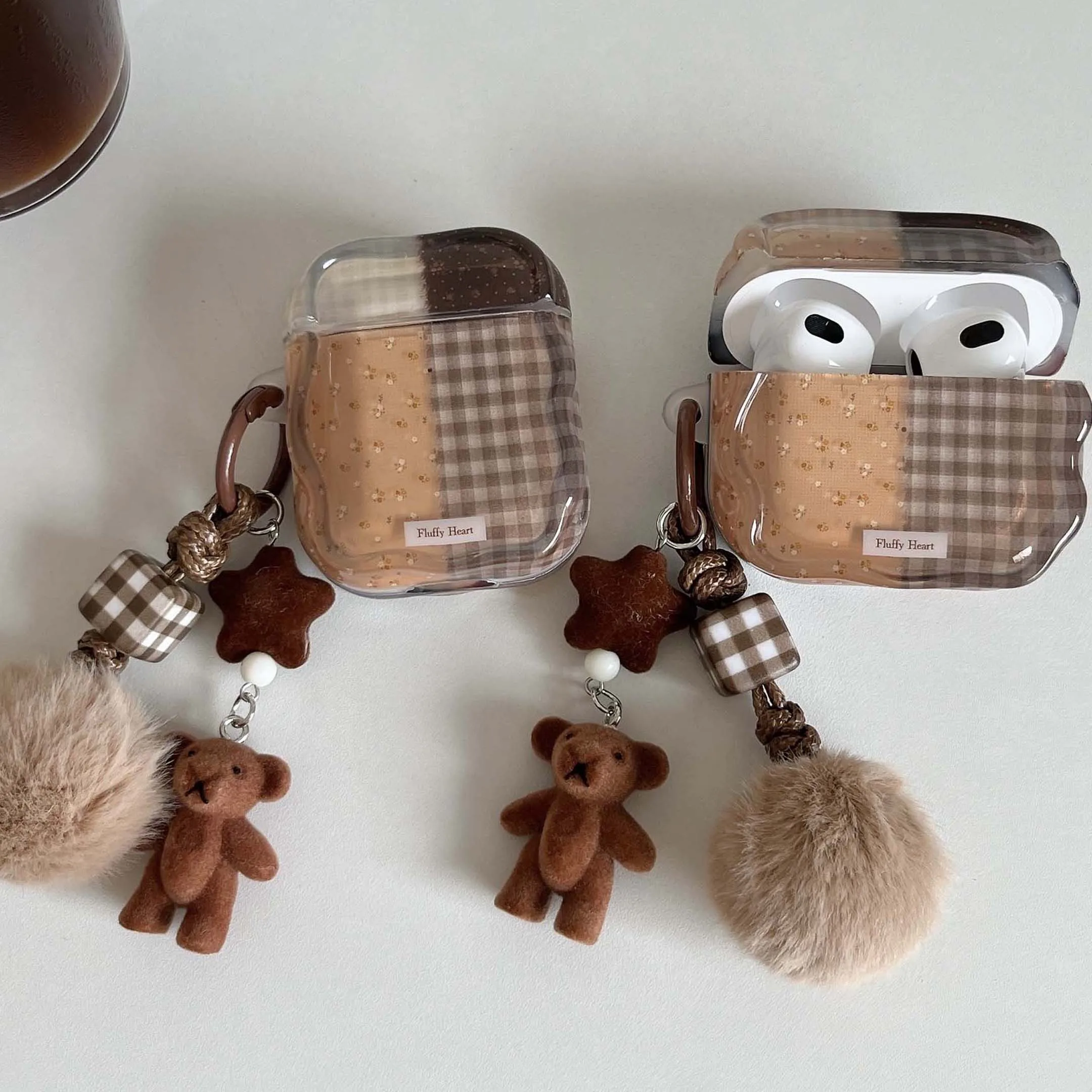 Flower ins cartoon bear bracelet wavy shockproof imd earphone case for apple airpods 4 pro 2nd 2 3 1 wireless bluetooth box