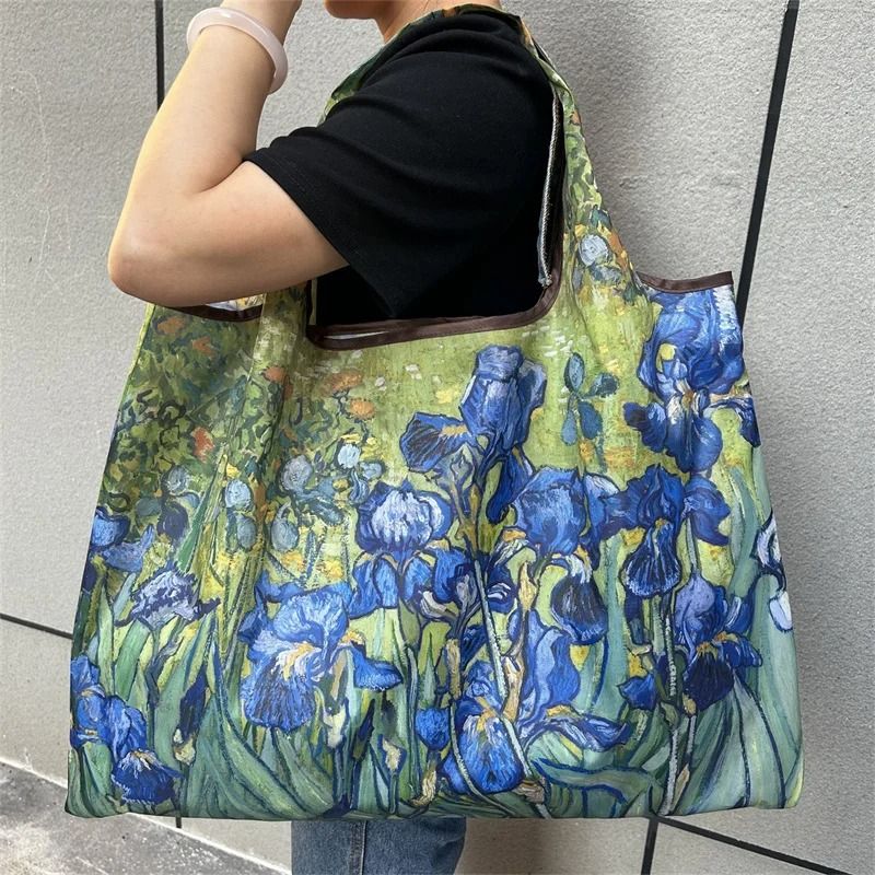 1.This artistic large capacity handbag is designed to combine functionality with oil painting style to enhance your daily tasks and outdoor activities. This foldable bag is made of durable Oxford fabric and decorated with vibrant oil painting style prints, making it easy to transition from a shopping store to a seaside vacation, providing a sustainable alternative to disposable plastics.