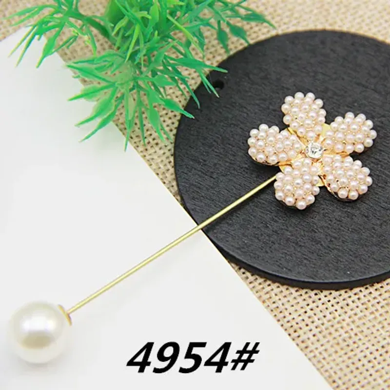 Flower Pearl Crystal Rhinestone Brooches Pins Long Needle Sweater Coat Cardigan Fixed Clothing Accessories DIY Jewelry Findings