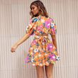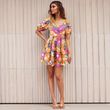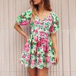 Design: lantern bubble sleeve design, V-neck printing, waist section stretch elastic, short sexy and flirty, suitable for beach vacation.