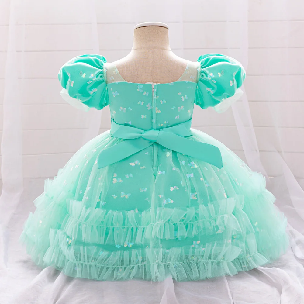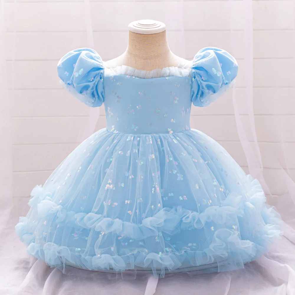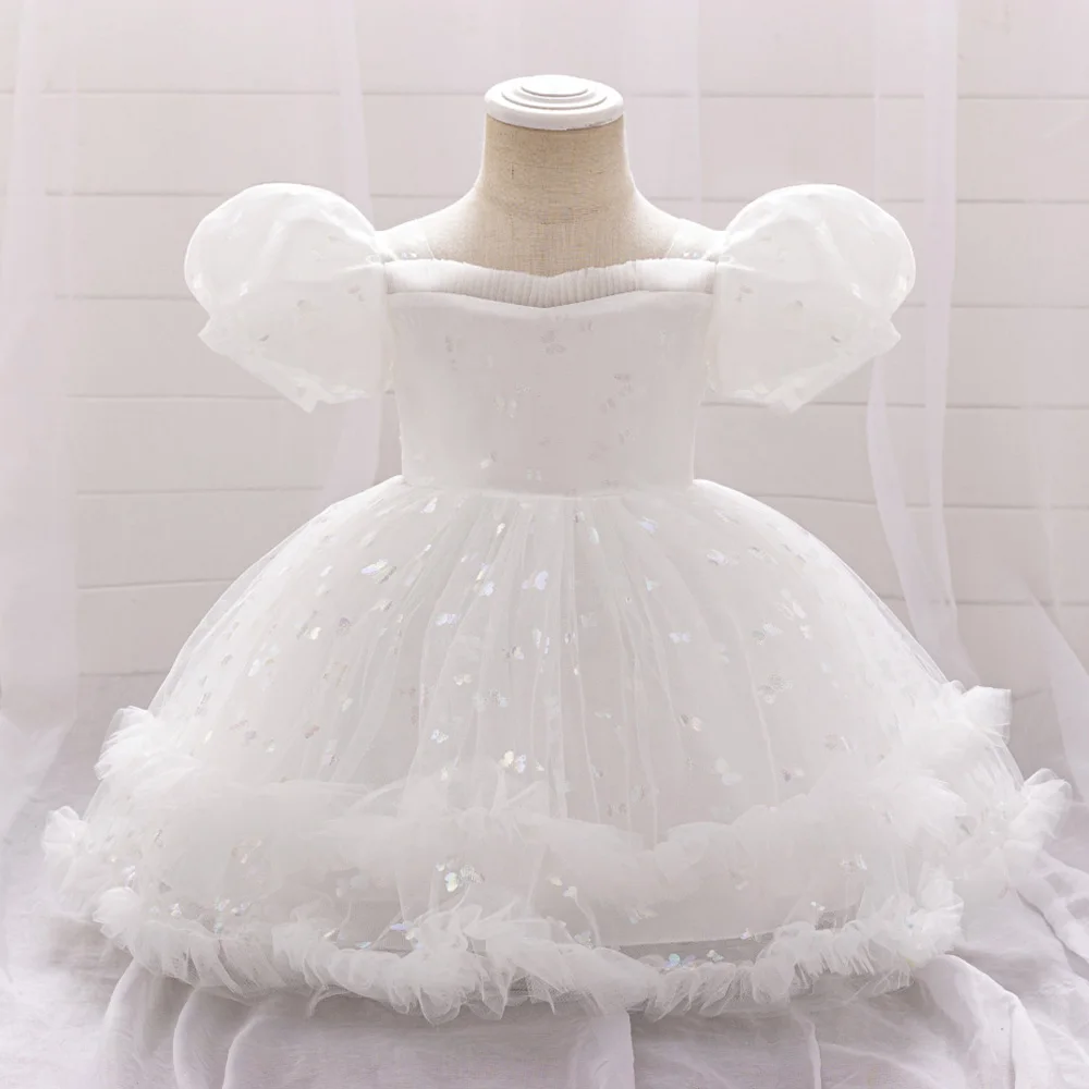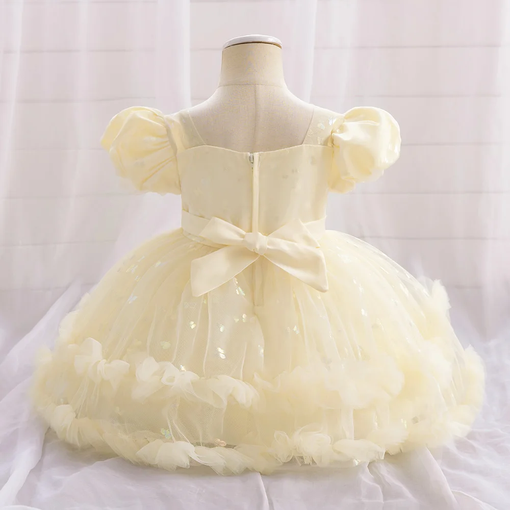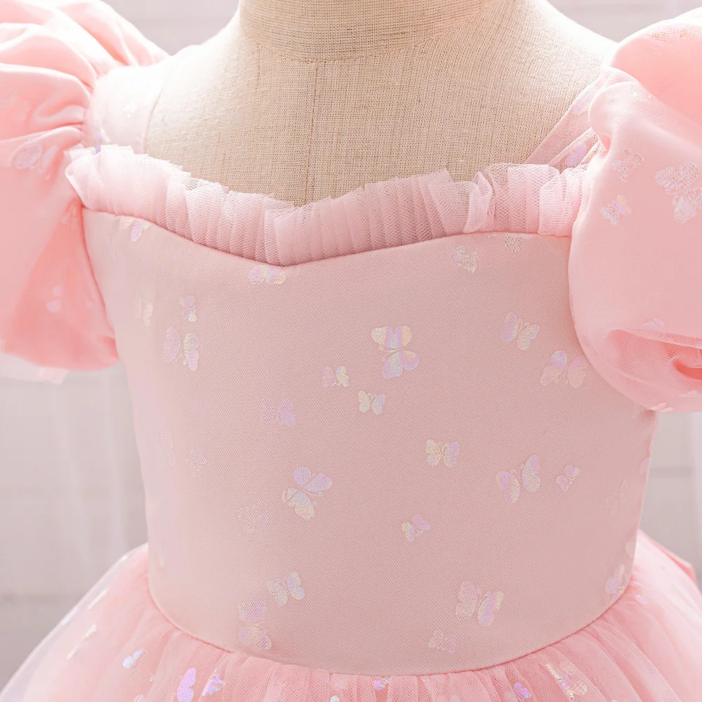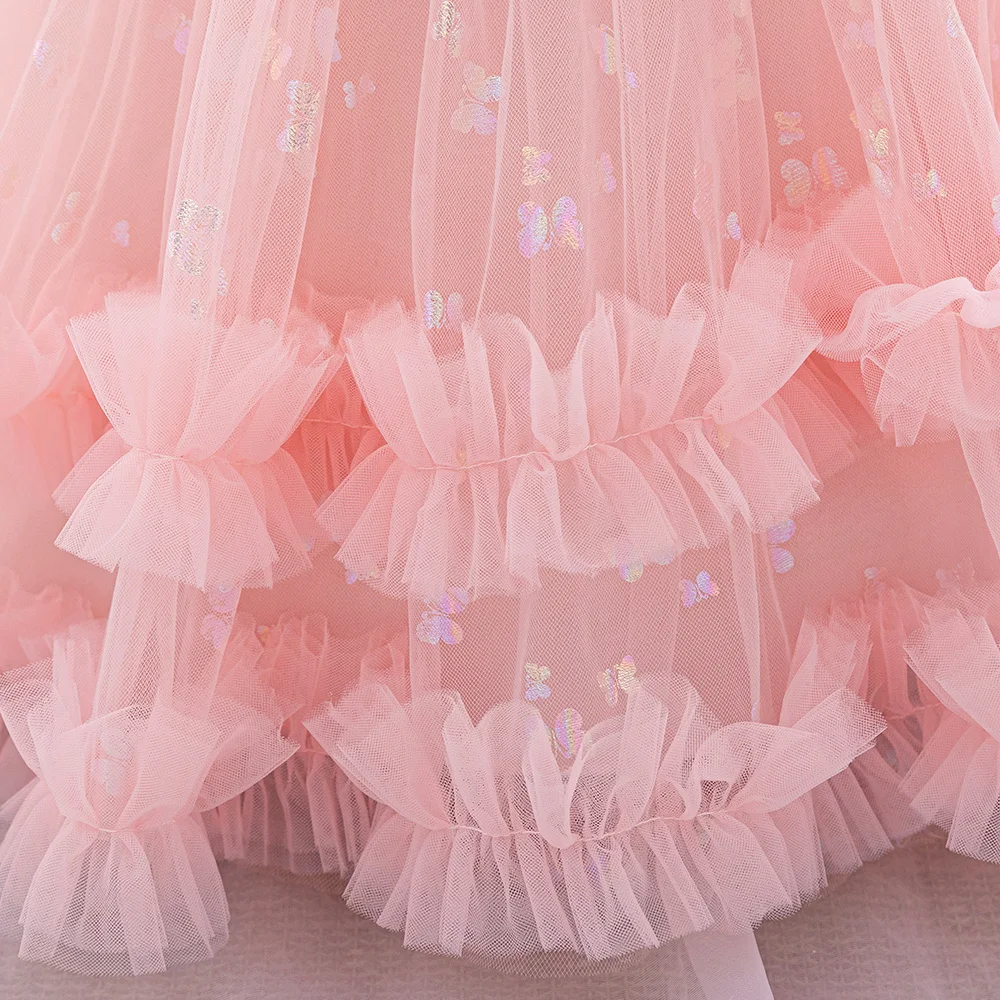 Fluffy Butterfly Sequins Baby Girl Dress Mesh Prom Kids Clothing Toddler 1st Birthday Baptism Gown Flower Bridesmaid Party Dress