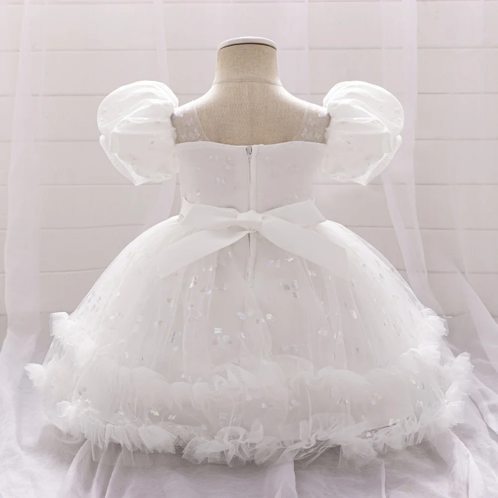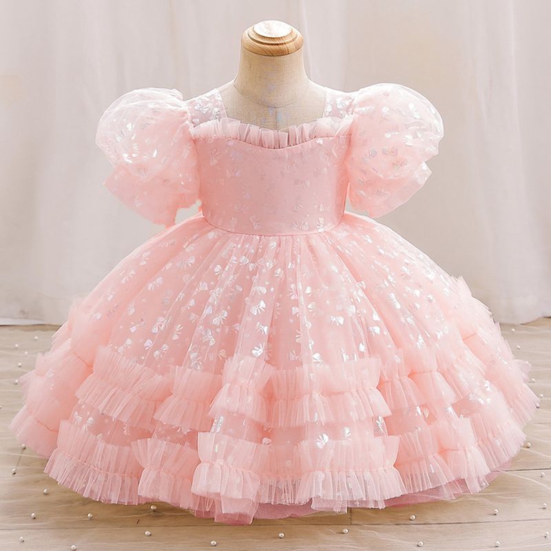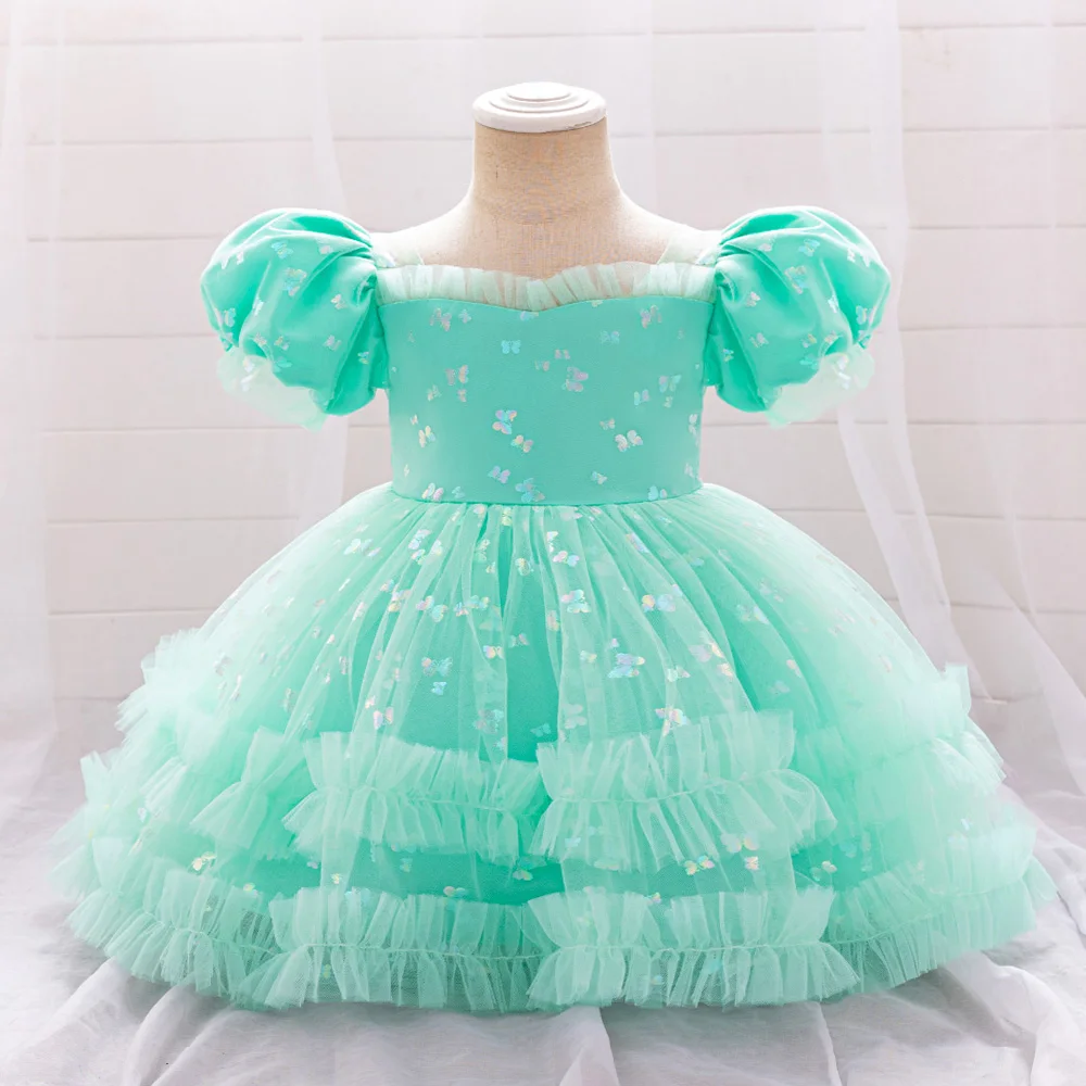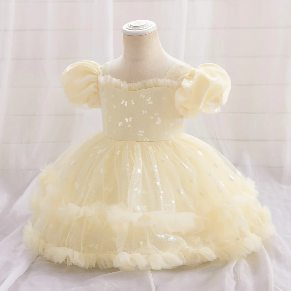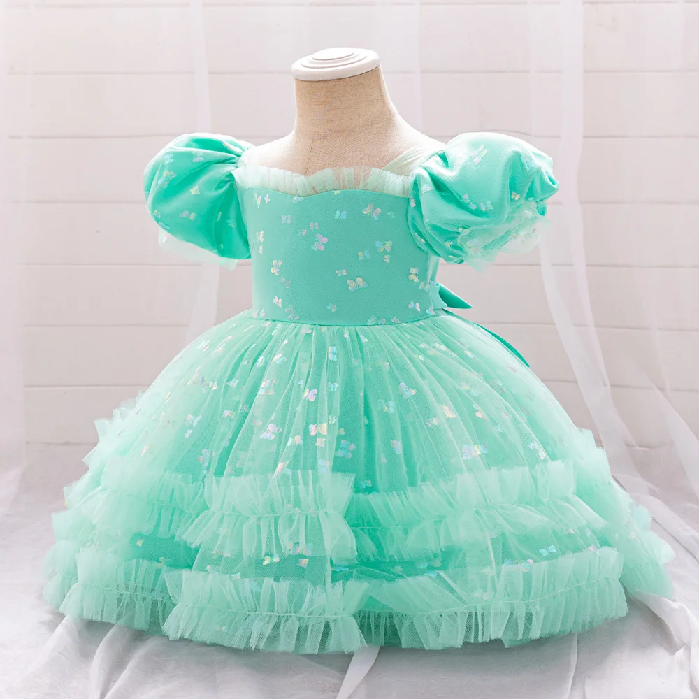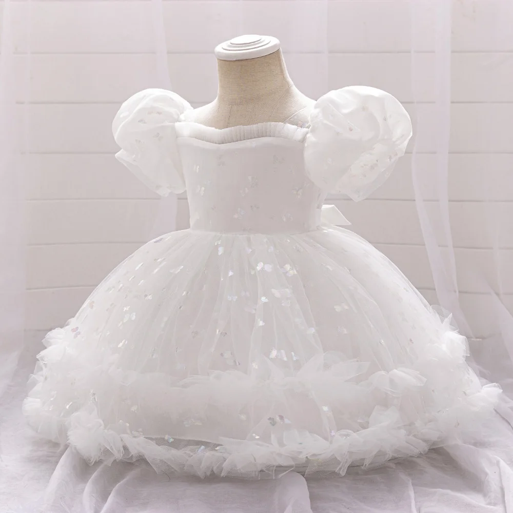Fluffy Butterfly Sequins Baby Girl Dress Mesh Prom Kids Clothing Toddler 1st Birthday Baptism Gown Flower Bridesmaid Party Dress