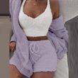 Fluffy Pajamas Set for Women Casual Sleepwear Tank Top and Shorts Plus Size Hoodie Leisure Homsuit Winter 3 Pieces Pijamas
