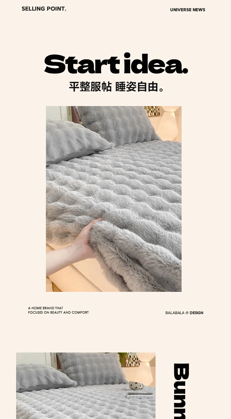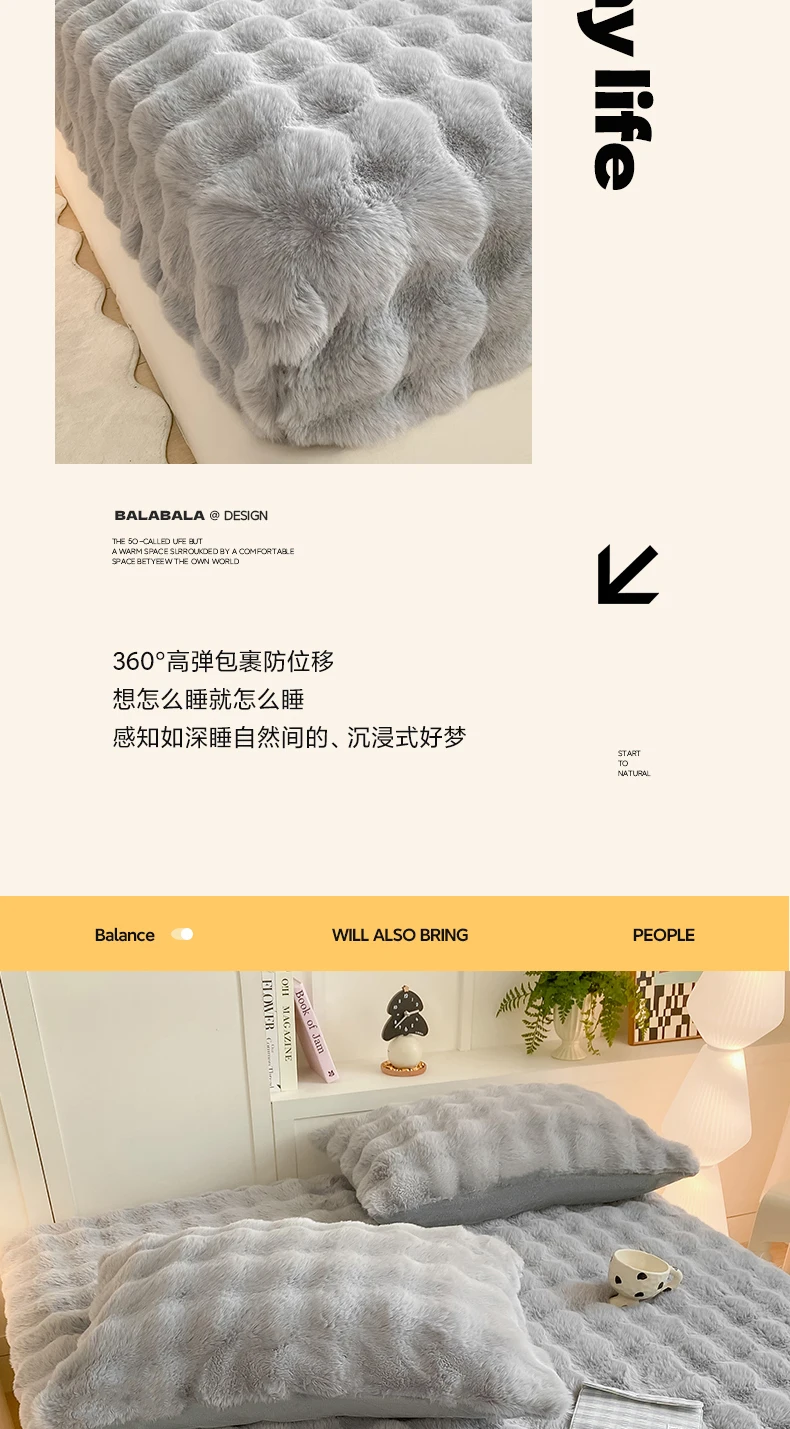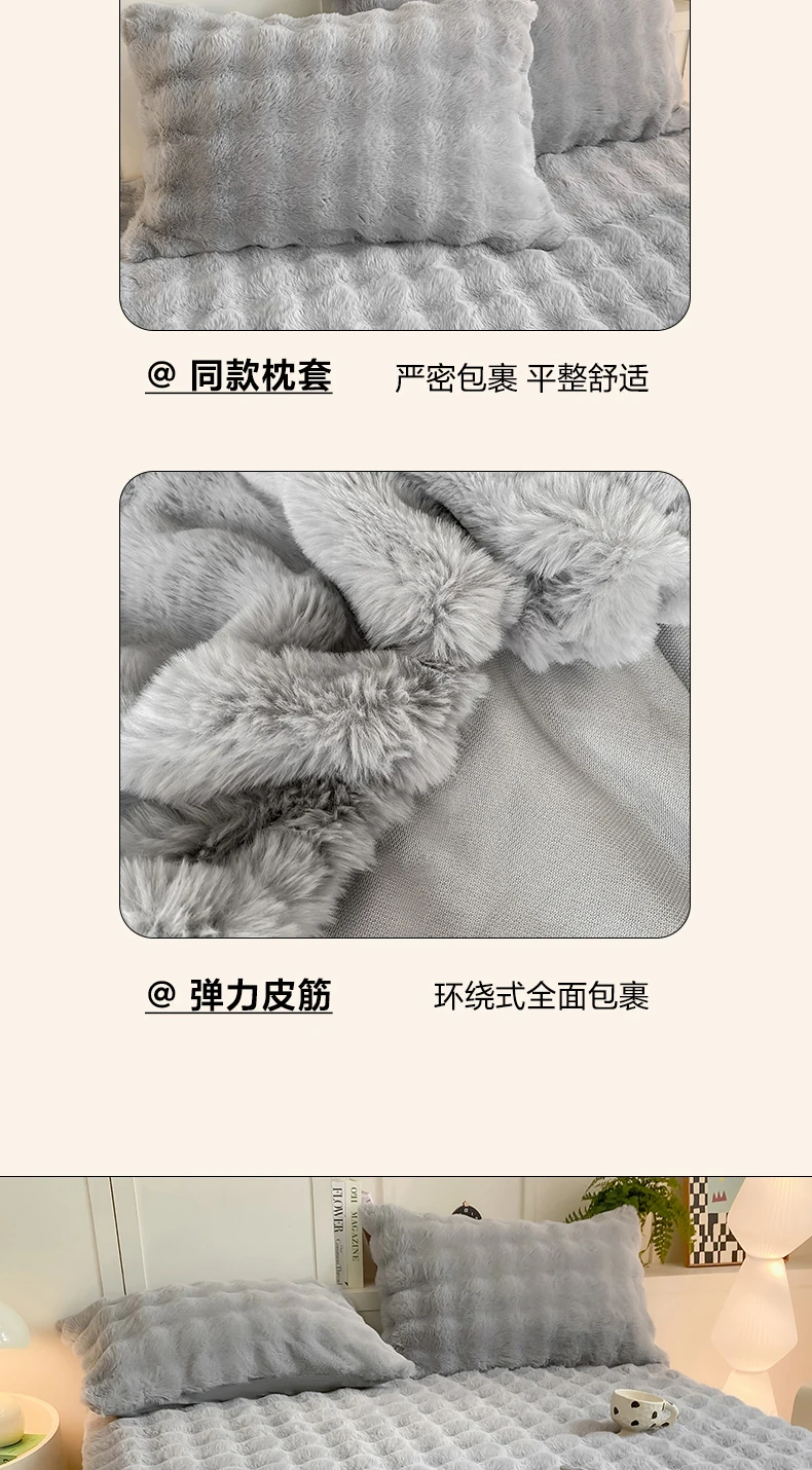 Fluffy Plush Fitted Bed Sheet for Winter Solid Color Rabbit Fleece Bed Sheets on Elastic Winter Warm Thicken Mattress Protector