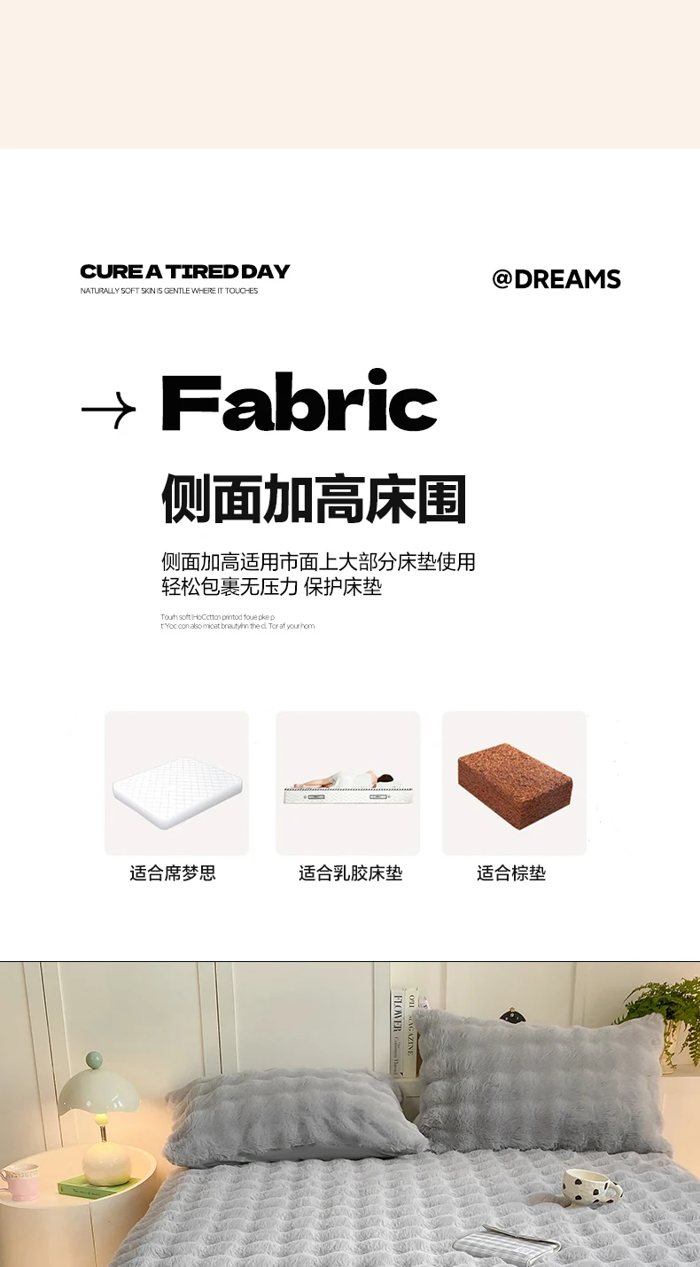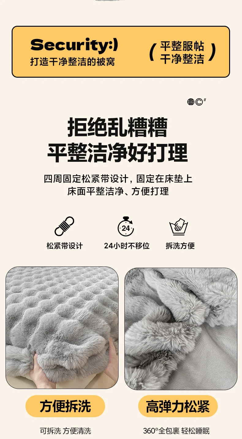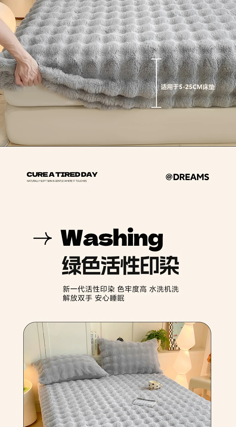 Fluffy Plush Fitted Bed Sheet for Winter Solid Color Rabbit Fleece Bed Sheets on Elastic Winter Warm Thicken Mattress Protector
