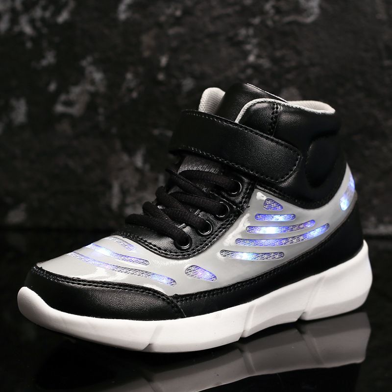 Flying Woven High-top Velcro Casual Shoes Fluorescent Shoes Led Luminous Shoes White 27