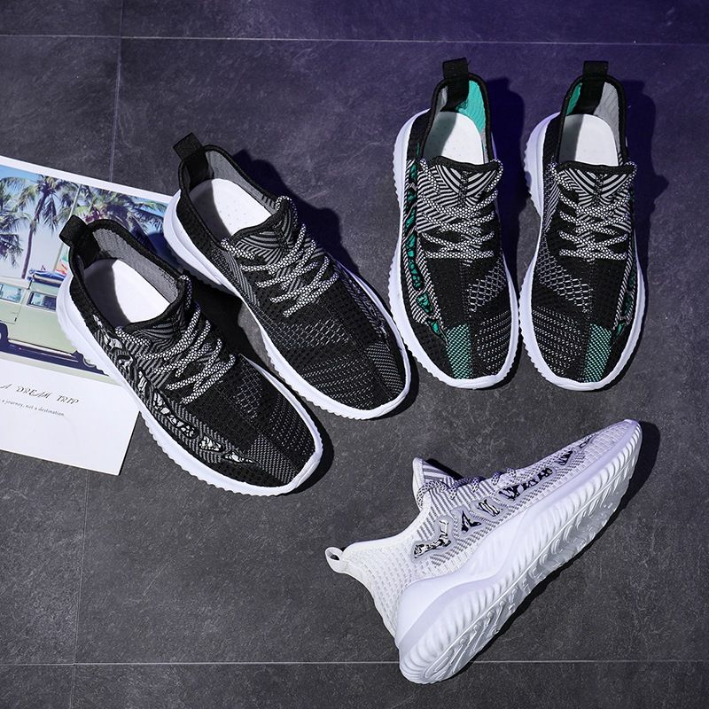 2021 spring new flying woven mesh sports shoes men's casual breathable coconut shoes men's Korean style trendy shoes running men's shoes.
