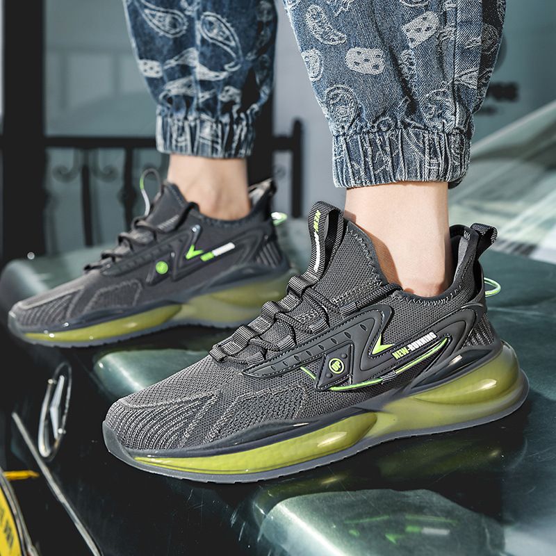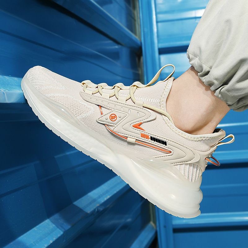Flying Woven Sneakers Men's Shoes Popcorn Running Shoes Light Soft Sole Casual Shoes Beige 39