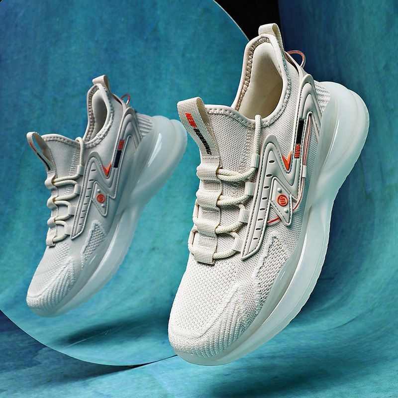Flying Woven Sneakers Men's Shoes Popcorn Running Shoes Light Soft Sole Casual Shoes Beige 44