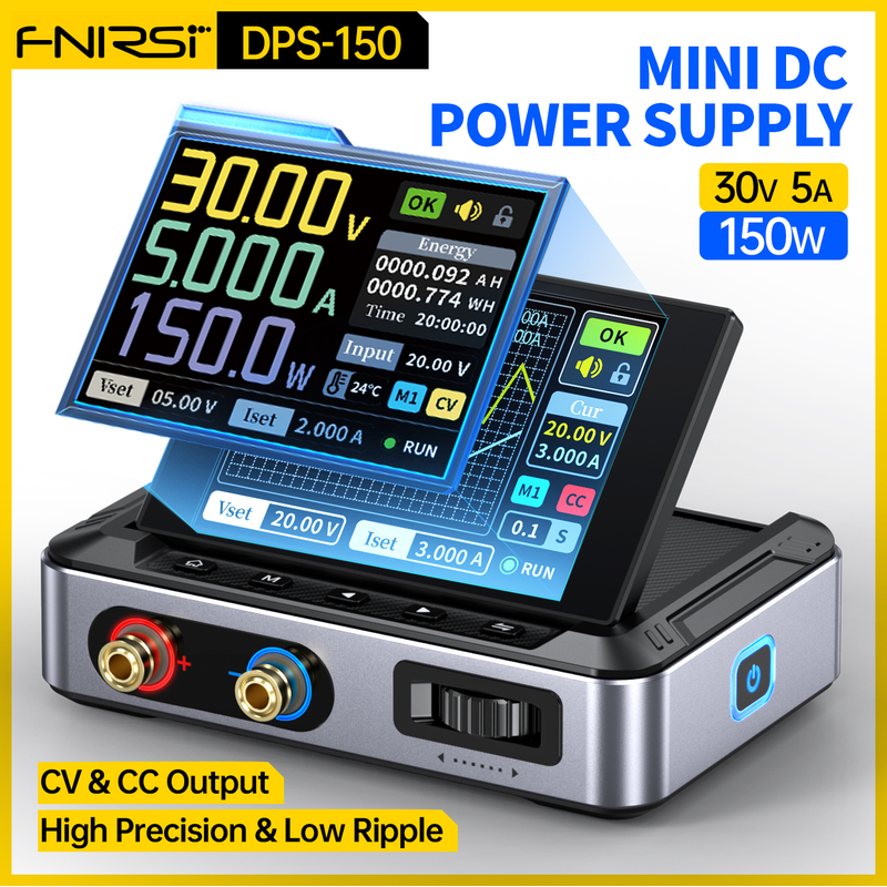 The FNIRSI-DP150 is a high-performance adjustable DC power supply launched by our company. It features a Type-C input interface and multiple power supply modes, allowing precise adjustment of output voltage (0-30V) and current (0-5A). It provides efficient, low-consumption, and stable output, equipped with multiple safety protection functions including overvoltage, overcurrent, overload, overheating, and reverse connection. It can be flexibly applied to serial connection of multiple devices, with rich and user-friendly display and operation, compact and portable humanized design, meeting various application needs. It is designed to provide you with high-performance and stable CNC power supply.