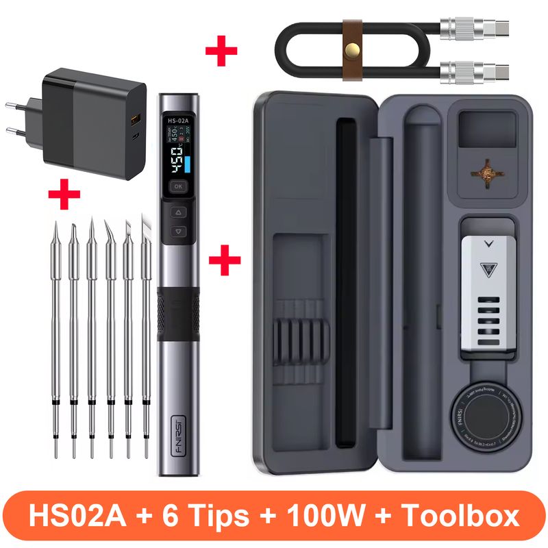 FNIRSI HS02B(K tip in the bag) + Toolbox + 2tips(I, IS) + 100W Charger + 100W Type-C cable