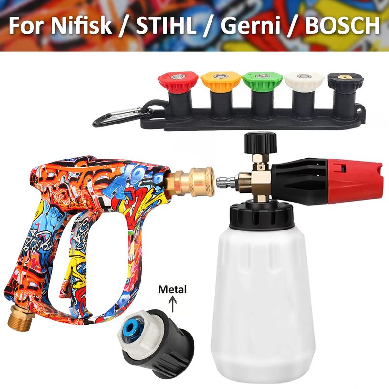 Foam Cannon Kit for Karcher/Nilfisk/Parkside/Bosch - High Pressure Washer Quick Connect Nozzle & Car Cleaning Adapter Set
