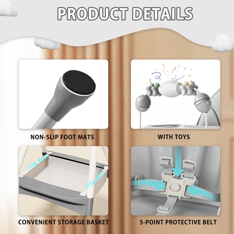 High-quality materials – Made of thickened, high-strength stainless steel for durability, impact absorption, and weight bearing. The polypropylene seat offers fatigue resistance and maximum comfort. The sturdy construction offers your baby comfort, stability, and ergonomics.