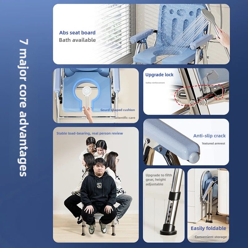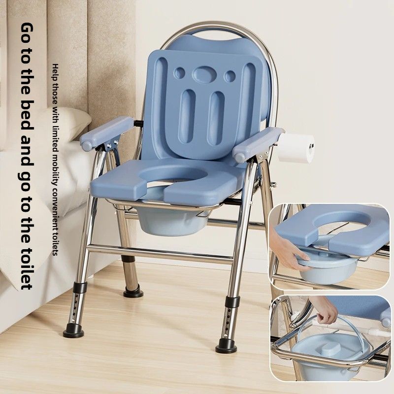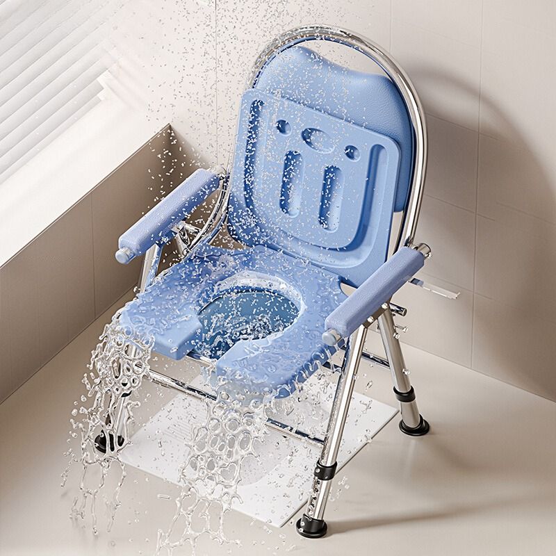 Foldable Commode Chair for Elderly Portable Toilet Chair with Armrests Bathroom Shower Chair For Seniors Adjustable Height