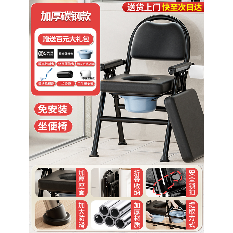 ‌Foldable Commode Chair, Non-Slip Toilet Seat Riser, Portable Bath Stool for Elderly, Adjustable Shower Seat with Backrest