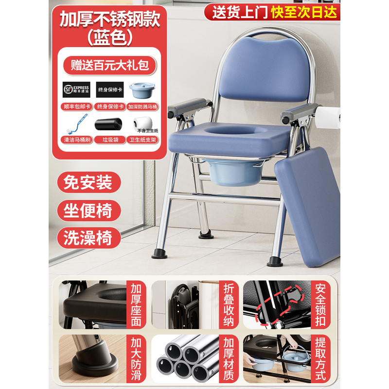 ‌Foldable Commode Chair, Non-Slip Toilet Seat Riser, Portable Bath Stool for Elderly, Adjustable Shower Seat with Backrest